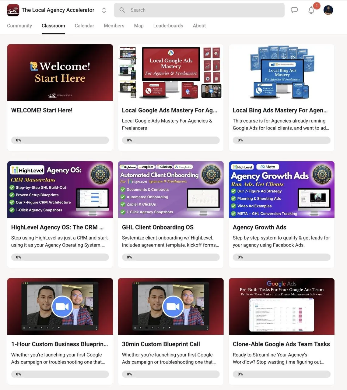 Itβs much more. While you get full access to our training courses (Google Ads, Bing Ads, Client Acquisition), this is primarily a Skool Community. You get access to our 7-figure agency SOPs, weekly live Q&A calls, and a network of other agency owners.